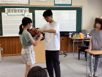 2024年2月7日 19時01分今日は、1・2年生が「昔の遊びで遊ぼう集会」をしました。地域ボランティアの方6名に来ていただき、4グループに分かれて、「こま回し」「お手玉」「福笑い」「あやとり」などを教えていただきました。